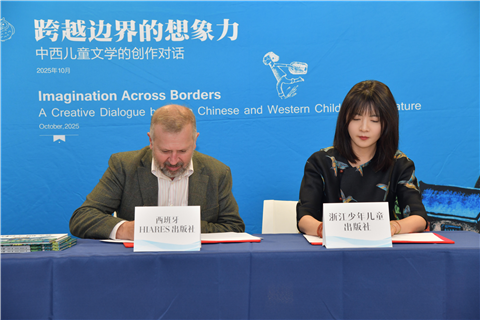 随后,现场举行了《铜铃是个猫头鹰》西班牙语版权签约仪式,浙江少年儿童出版社与西班牙HIARES出版社签署了协议。双方将专注《铜铃是个猫头鹰》西班牙版权的整体开发与市场化推广,为后续的深入合作共同绘制美好蓝图。